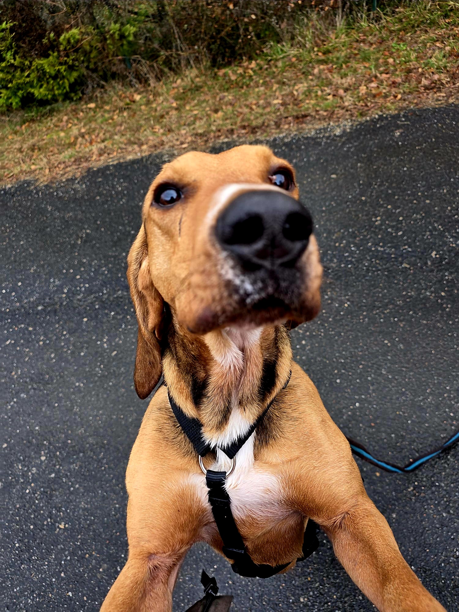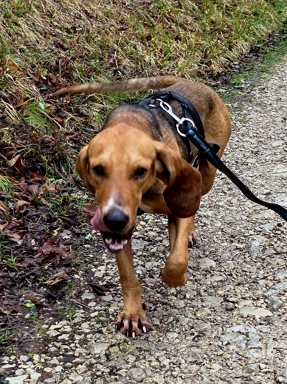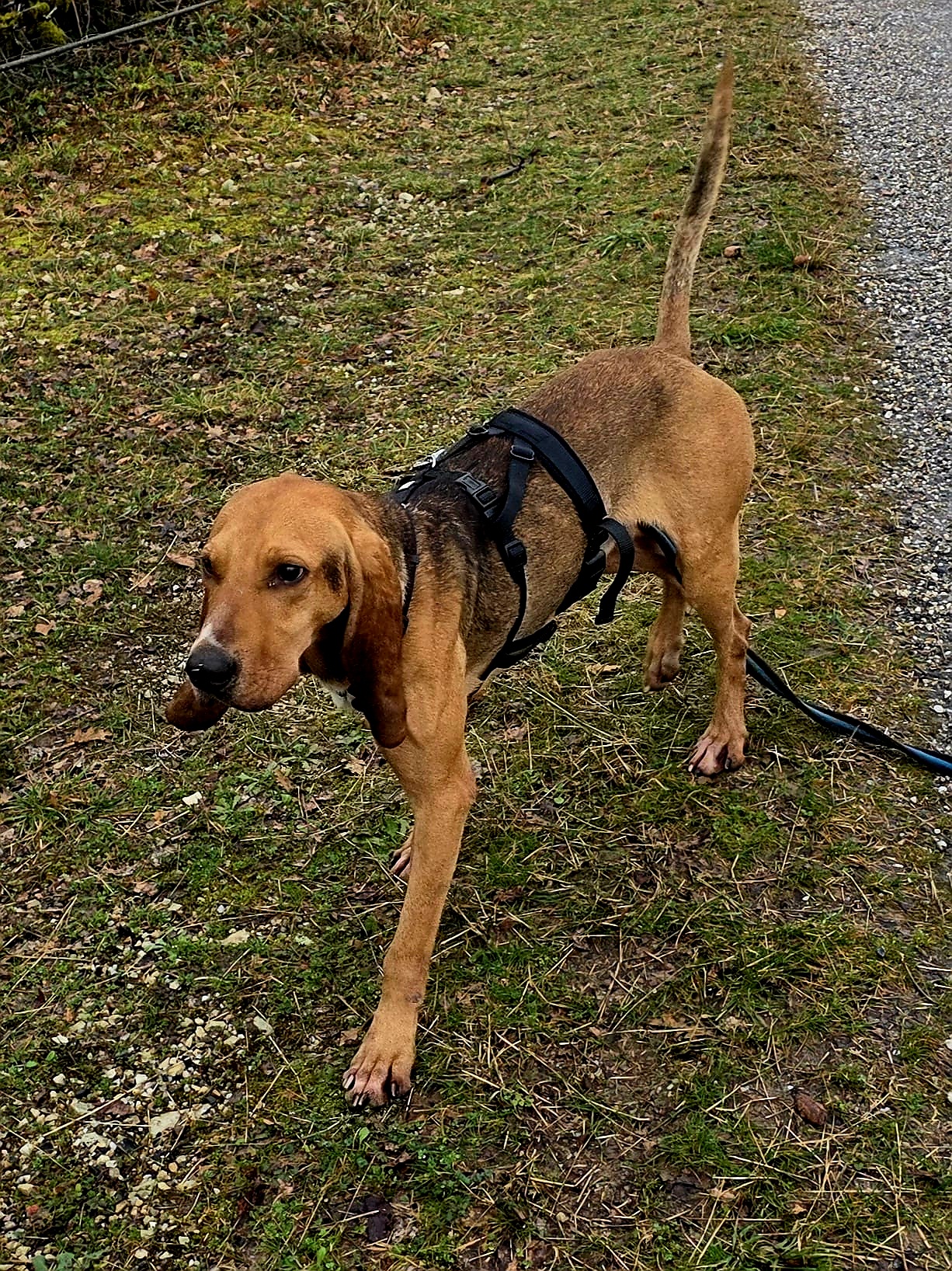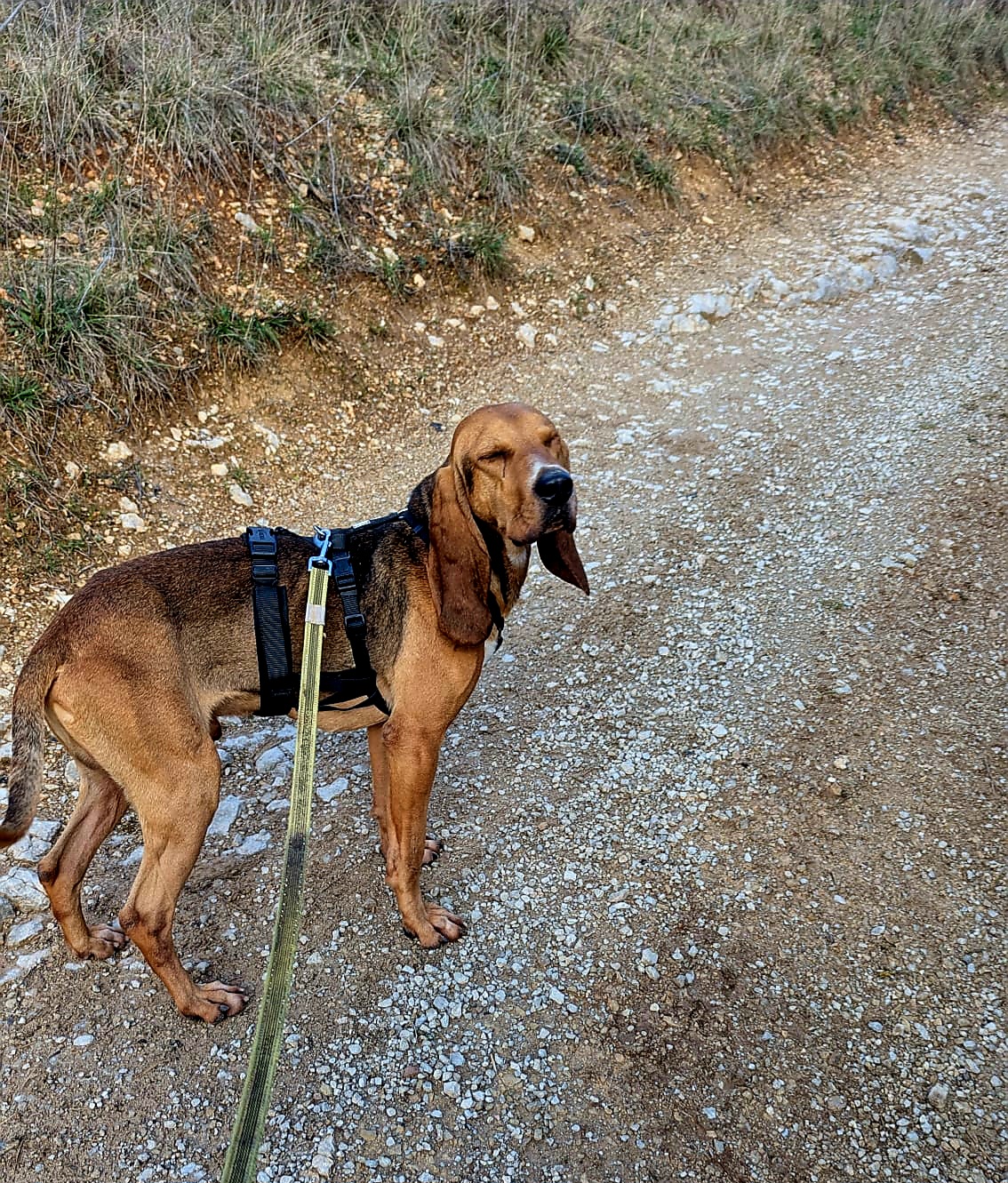 During walks, he is very attentive and does not pull on the leash, though his hunting heritage means he loves to follow his nose whenever an interesting scent crosses his path.